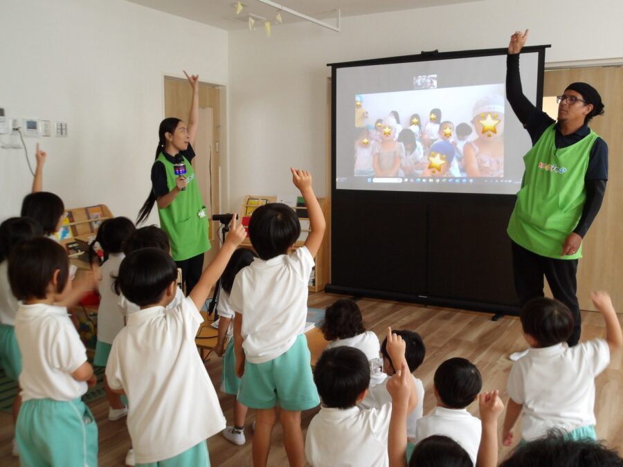 今日はEnglish Timeが終わった後に、ナーサリースクール勝川とテレビ電話を繋いで、二度目のEnglish Time スタート!