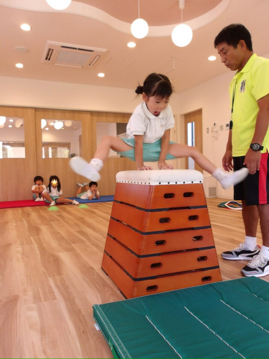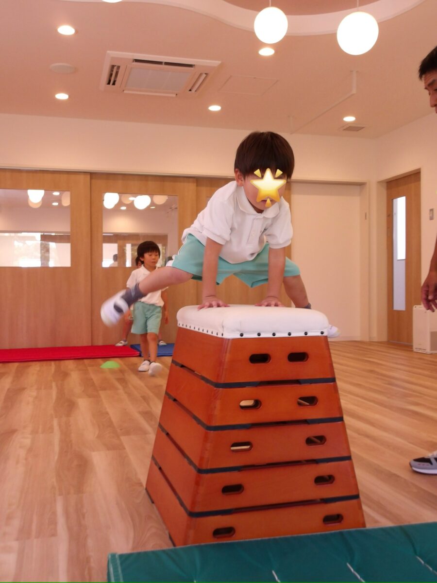 跳ぶことはまだ難しいですが、跳び箱の奥に手をつけるようになってきています✨