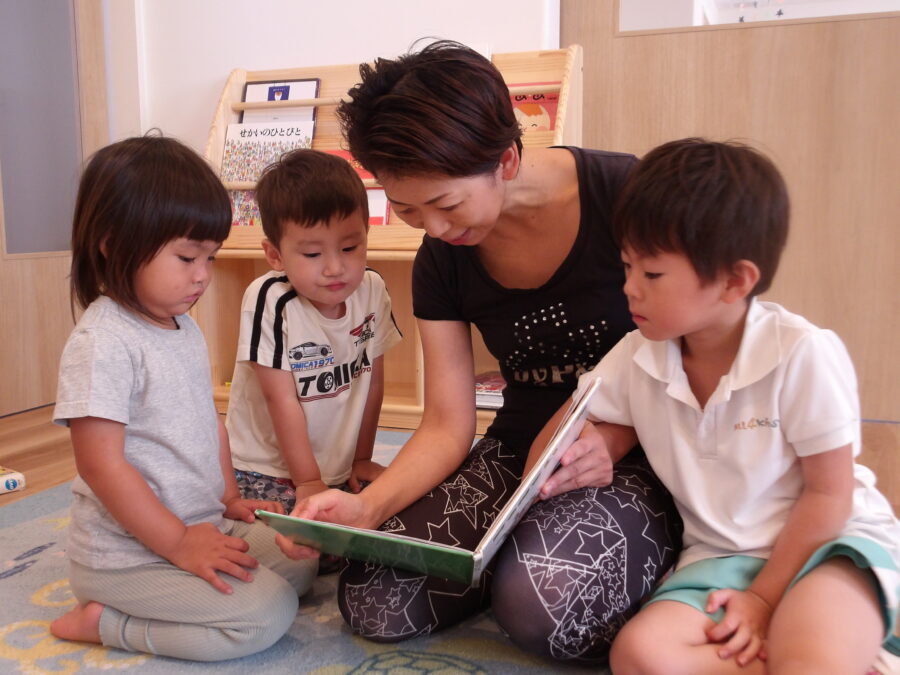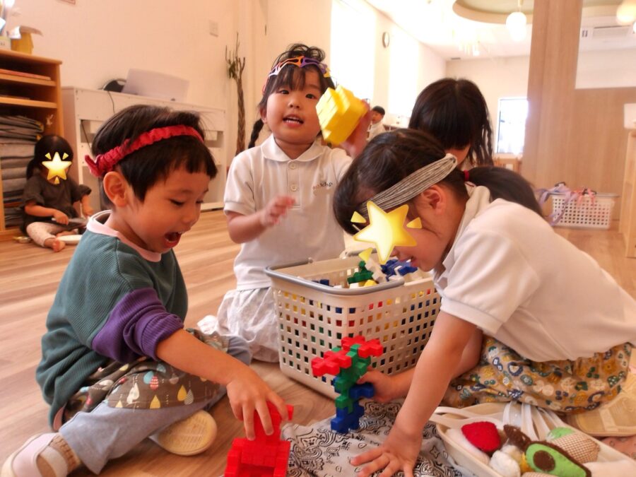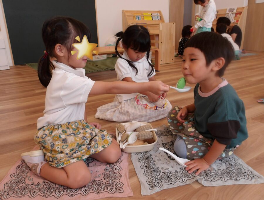 その後も、保育園のおもちゃやお友だちとの遊びをいろいろ教えて案内する子どもたち。絵本を読んでもらったり、一緒に給食を食べたりして、楽しく過ごしました。