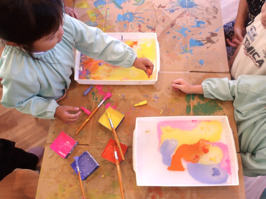 塗り絵や絵の具あそびもハロウィン仕様🎃