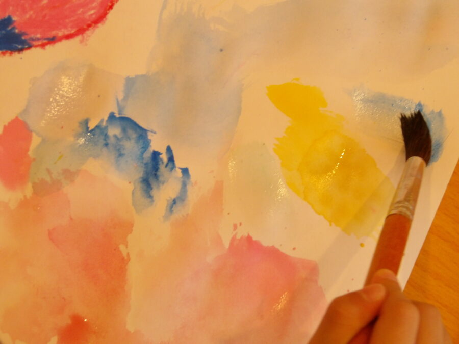 絵の具をとる量、水を付ける量で色の濃淡が出たり、グラデーションになったり。