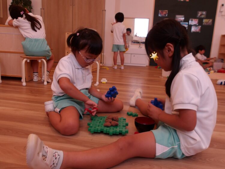 そら組のクッキングが気になって、たまに窓を覗きつつ、お部屋であそびましたよ。