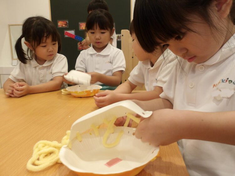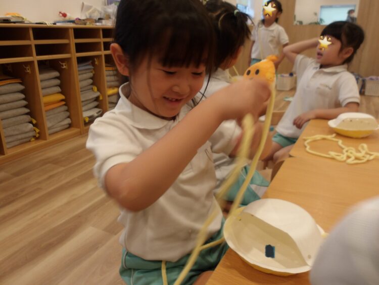 はじめは戸惑う姿も見られましたが、作り方が分かると集中して作り進めていました。