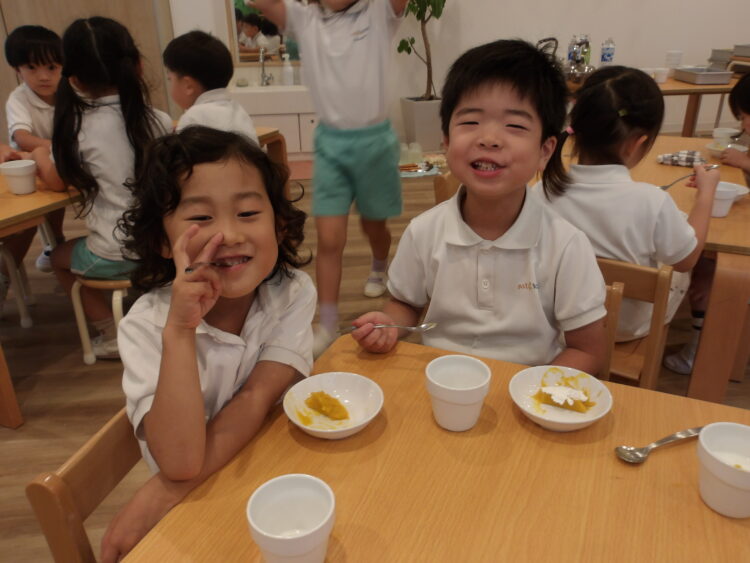 「美味しい〜!」とそら組さんのプリンを大絶賛♩