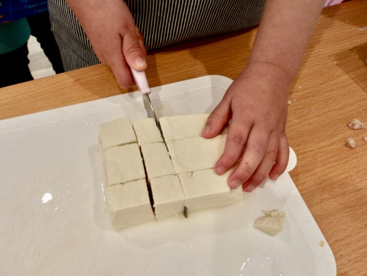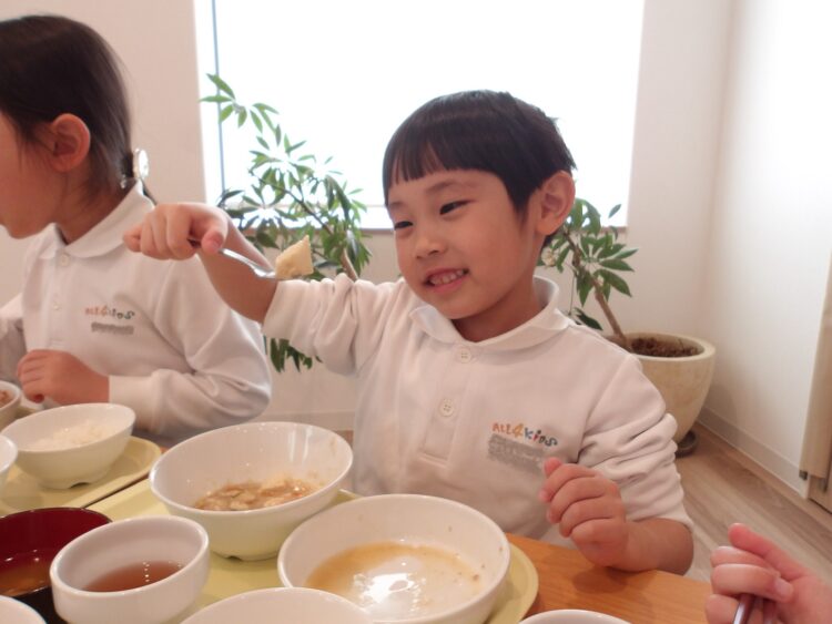 前回に続き、《みじん切り》《さいの目切り》を新しく伝え、「サイコロみたいに切るんだね!」と包丁の切り方を新たに覚えた子どもたちです♩