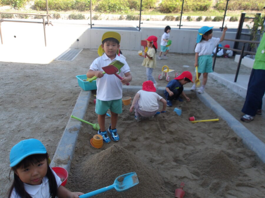 午前中は天気が良かったので園庭で思い切り身体を動かして遊びましたよ。