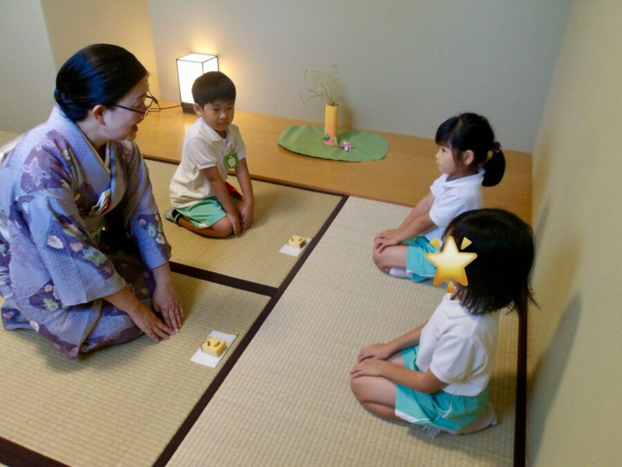 お部屋に戻ると、たいよう組のお友だちは茶の湯あそびに参加しました。