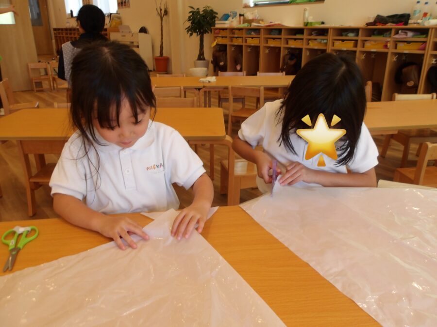 午後からはハロウィン仮装作りの続きをしました。