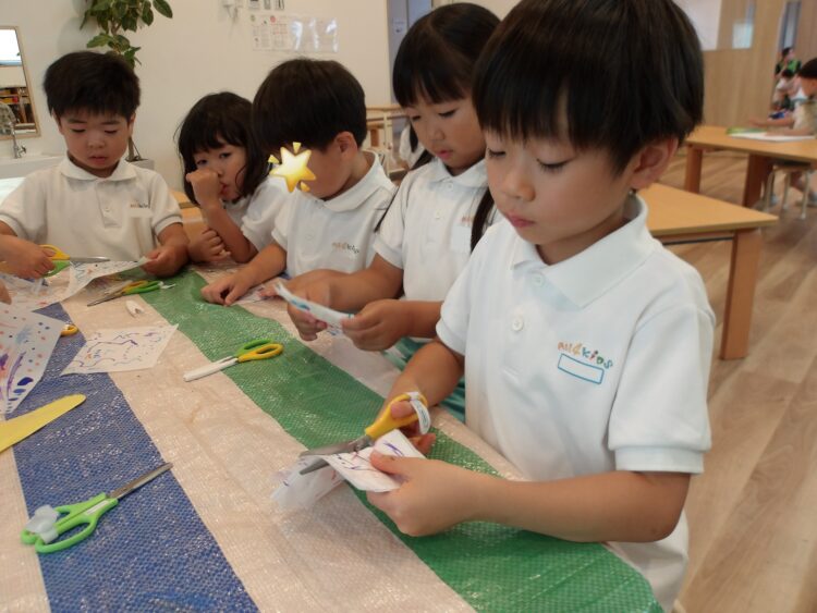 「どんだけ切るんだよ〜!」と呟きながらも、保育者にやり方を確認しながら切り進めていきました。