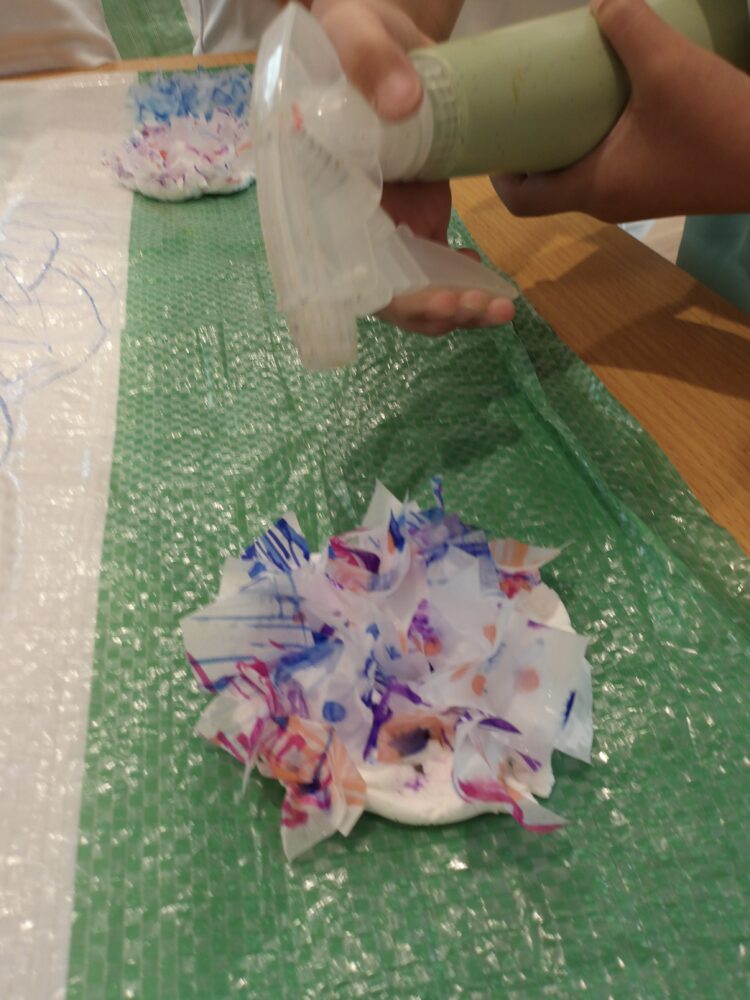 と制作過程で素材の性質に気付きも見られました。
