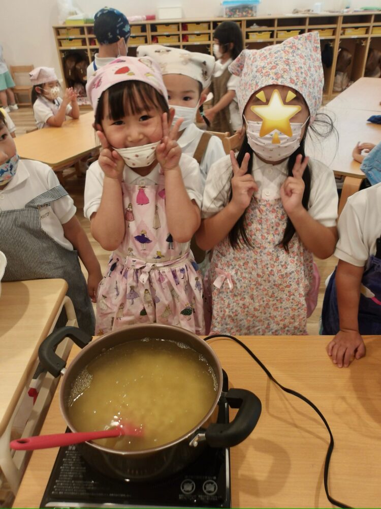 厚さや大きさが不揃いな具材は子どもたちの頑張りが詰まっていて、とっても美味しくできました☺️