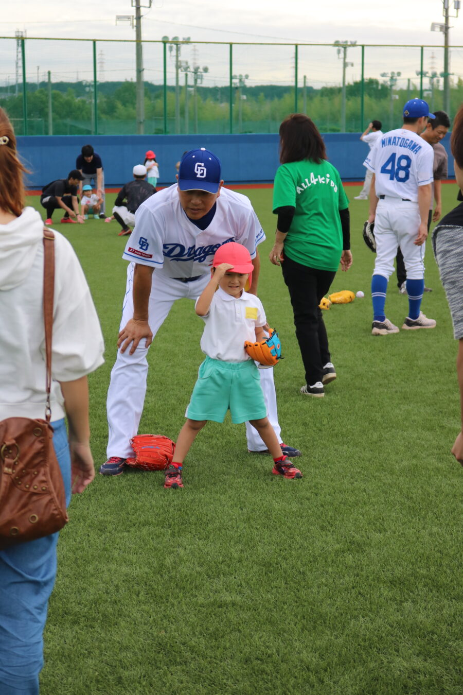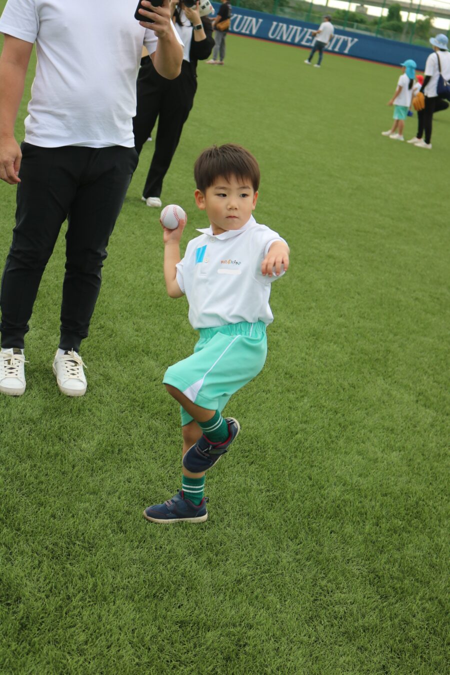 元中日ドラゴンズの山本昌広さんと湊川誠隆さんが講師として来て下さり、ALL4KIDSの4歳児クラスひとりひとりの投球を見てアドバイスをしてくださいました。