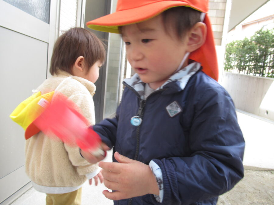 ひよこ組さんは、ちょっとした触れ合い遊びをします