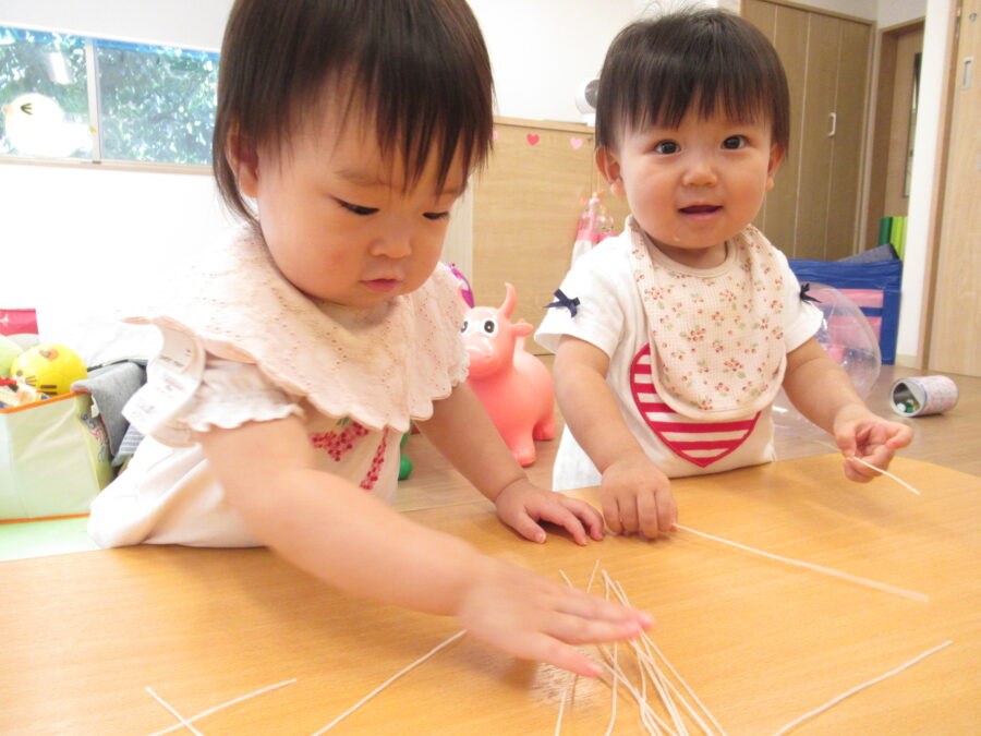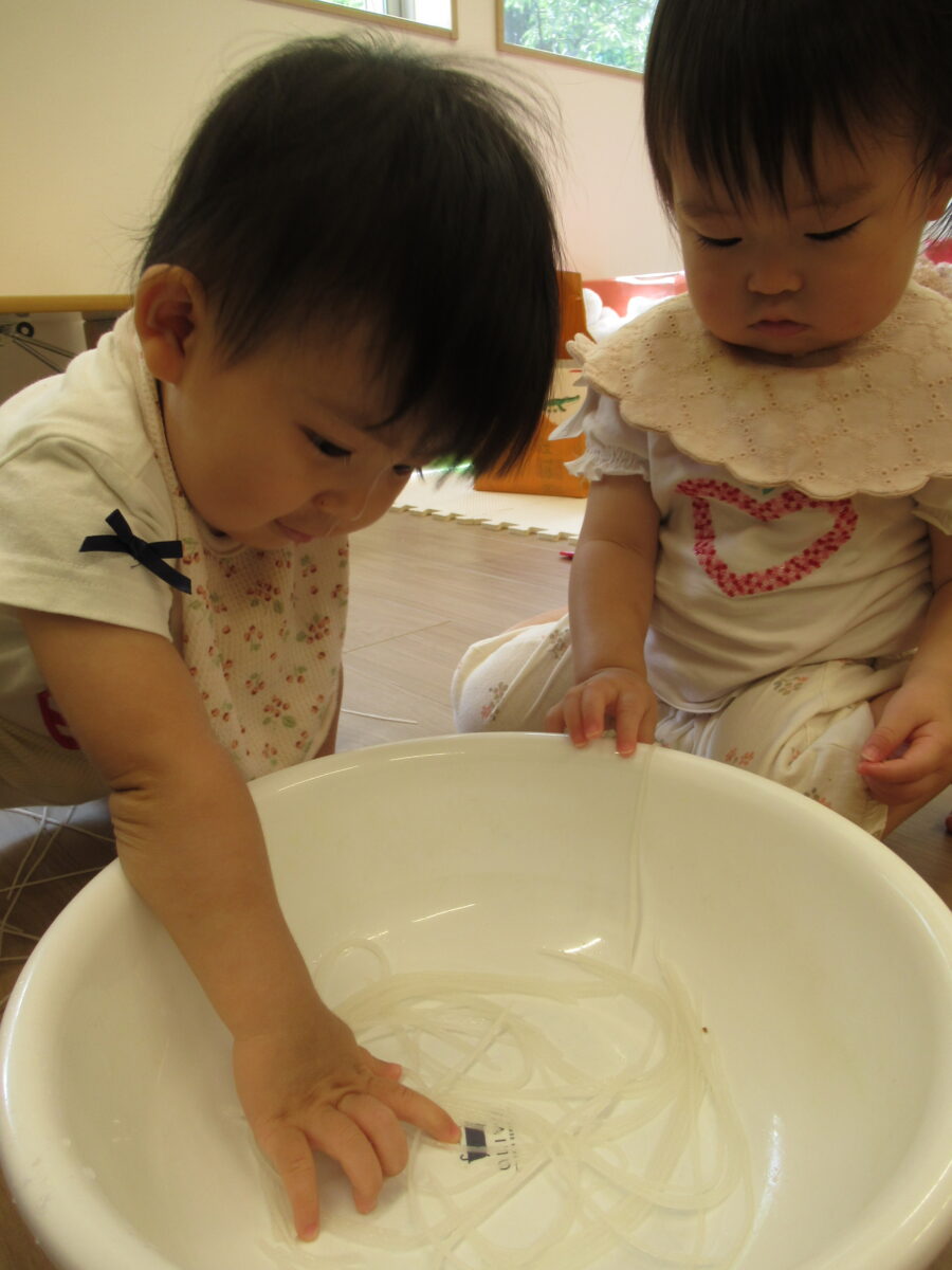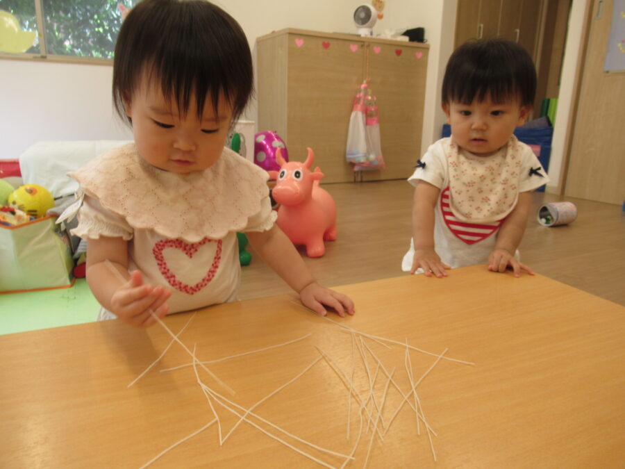 びよーんと弾むはるさめをじっくり触ってみたり、投げてみたり、いろんな遊びかたで楽しみました😊