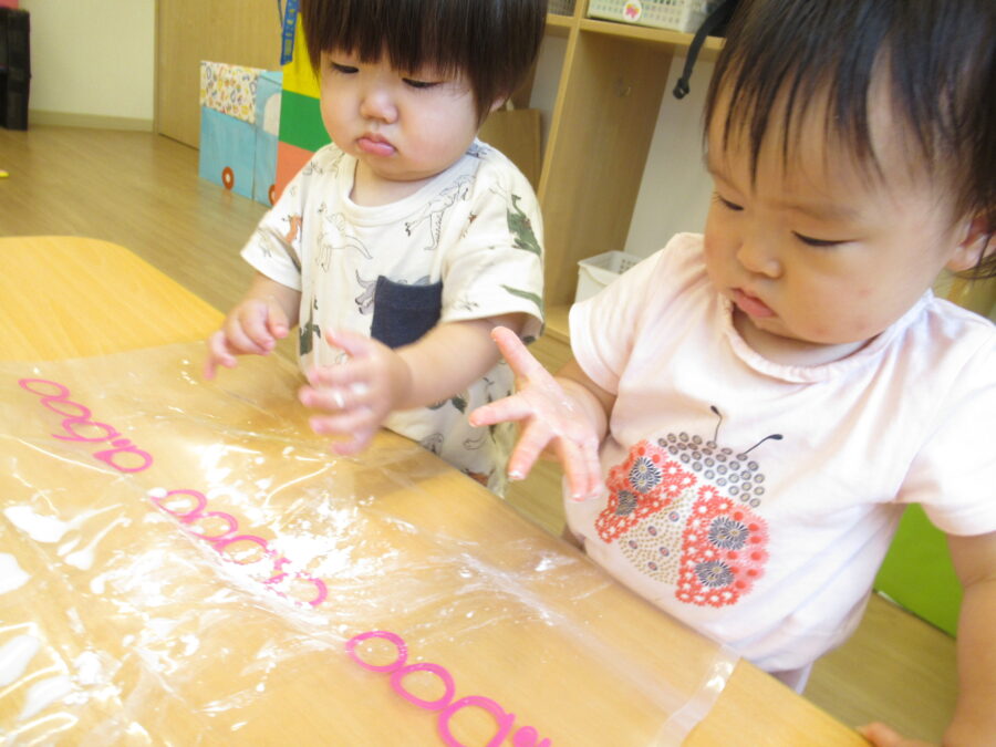 🐣ひよこ🐣 片栗粉を触ってみたよ☺️