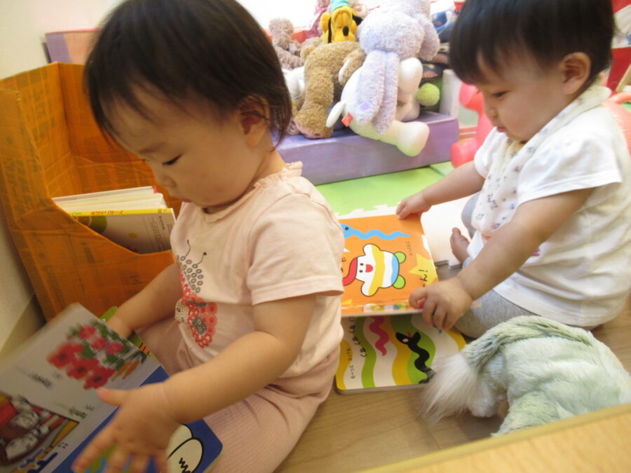 好きな絵本を出し、ペラペラめくって真剣です☺️