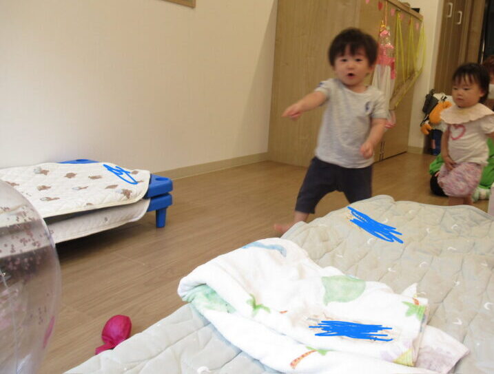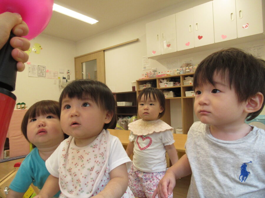 膨らます音に惹きつけられてくぎ付けの子どもたち☺️