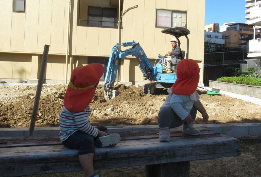 公園のお隣では、工事をしていて、ショベルカーをまじかで見る事も出来ました。