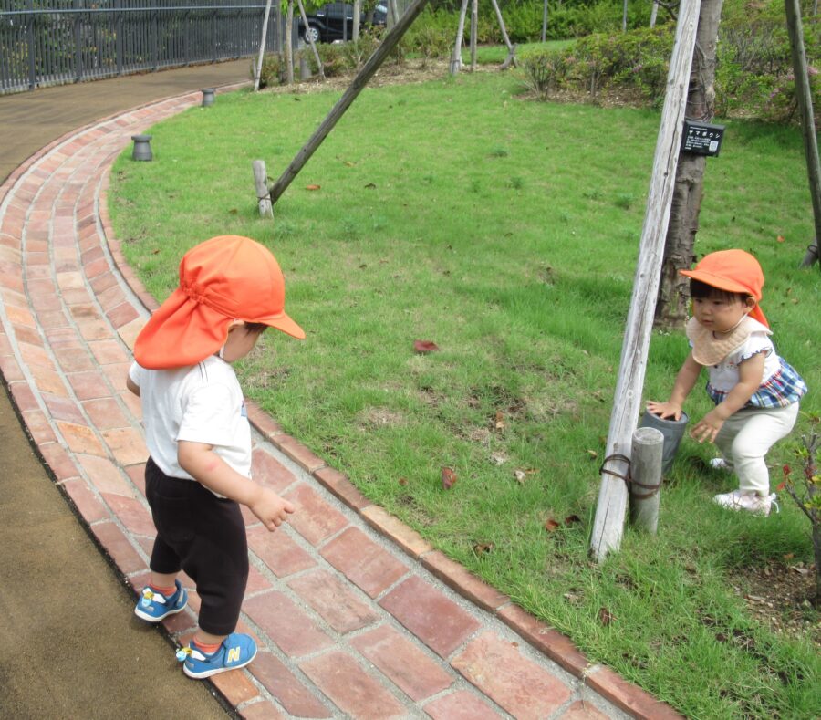 今日の広場でたくさん身体を動かして遊びました。歩行で帰る子・散歩車に乗る子に分かれましたが、誰もウトウト寝てしまうことなく。