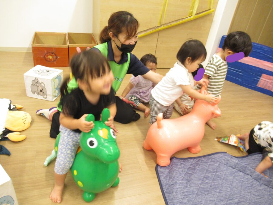 ひよこ組さんは歩行や四つ這いが活発で移動そのものも楽しんだり、うさぎ組の玩具で遊び込む姿が見られましたよ。