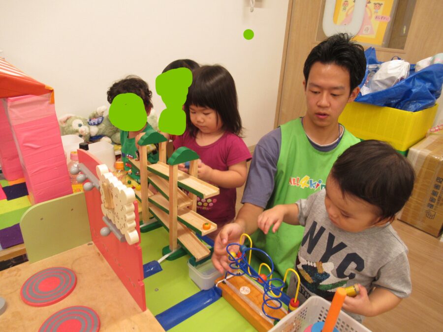 雨天の今日は、ひよこ組・うさぎ組と合同で好きなお部屋で好きな玩具で遊びました😊