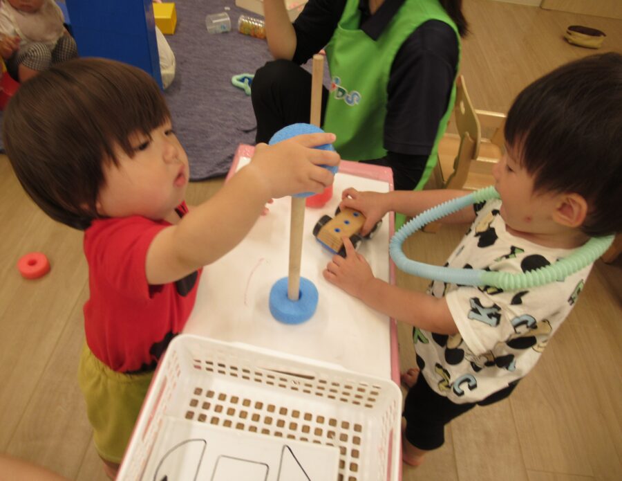追視の玩具や指先を使った玩具も集中して遊んでいましたよ。