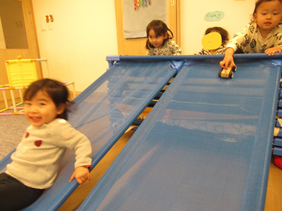 おもちゃの車にも滑ってもらったりと