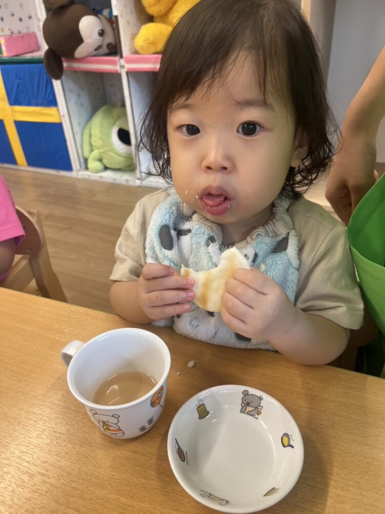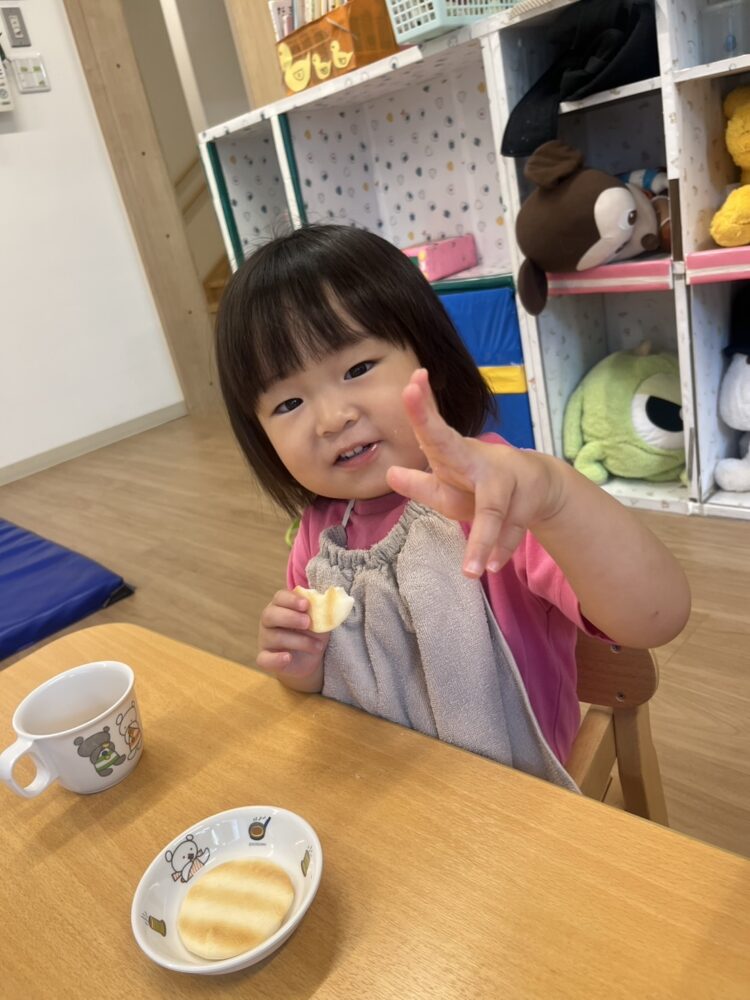 朝のおやつは おせんべい🍘