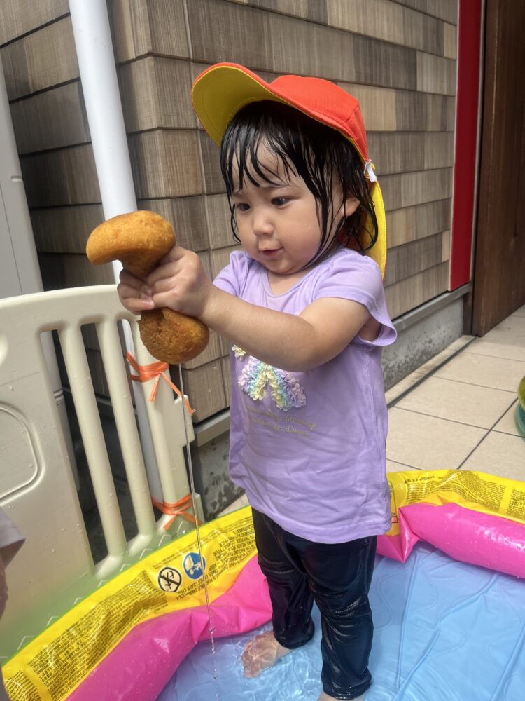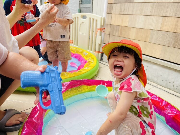 水風船で遊んだり、カップで作ったシャワーで遊んだりと、毎日ベタベタになりながら楽しんでいます🍉