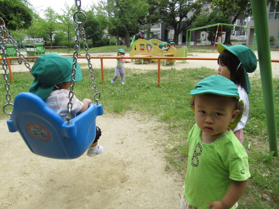 ブランコは、みんなが乗れるように、10数えたら代ろうね!とお話をして、乗ってみました。
