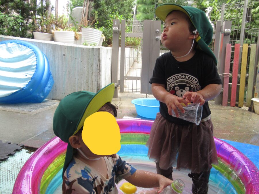 すきなおもちゃを使ってお水遊びを楽しみます