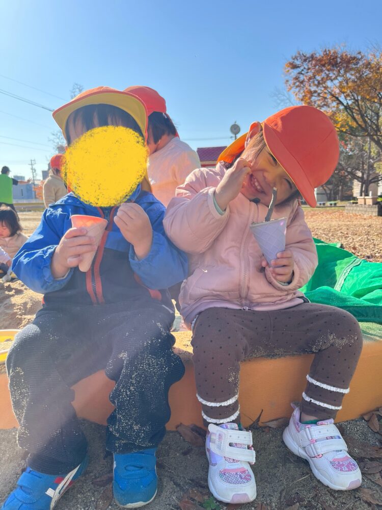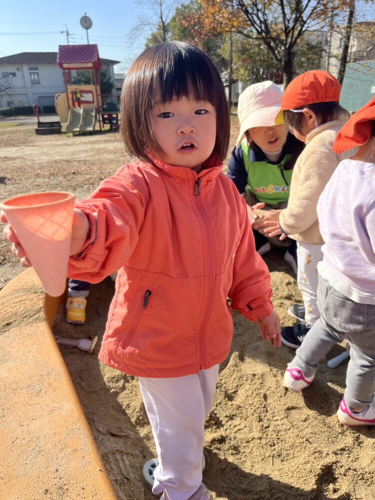 お砂場では、先生とアイスクリーム屋さんごっこを楽しみました🍨