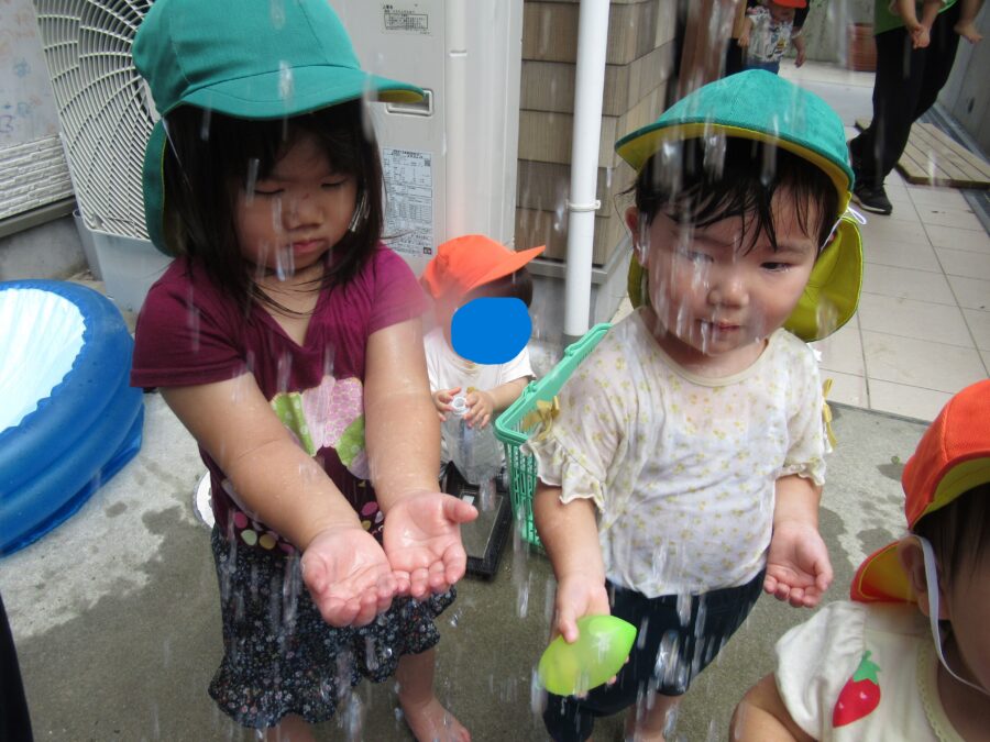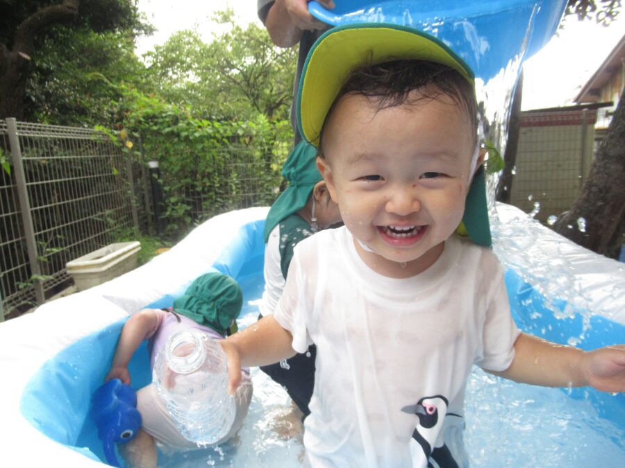 先生からの試練! 滝修行! 沢山お水がかかっても平気だよ!はいどうぞ! お友達に水をおすそ分け!今年最後の水遊びを存分に楽しみました