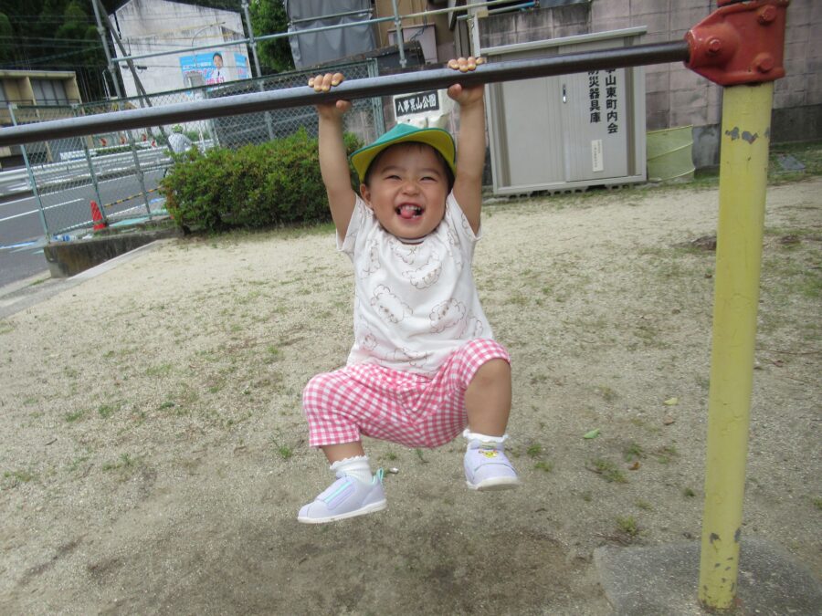 「1,2,3,4、、、」鉄棒にぶら下がって得意げな様子でした![]()