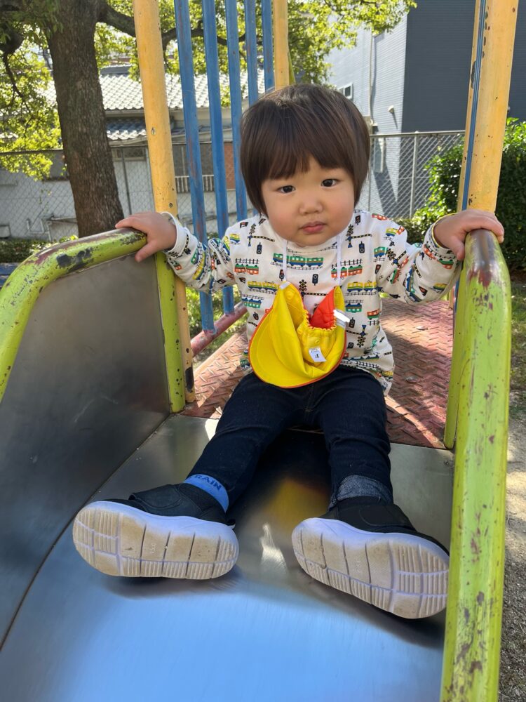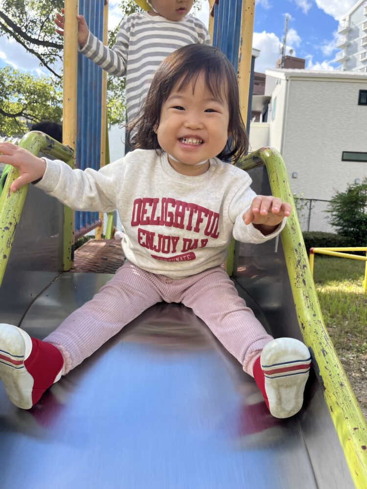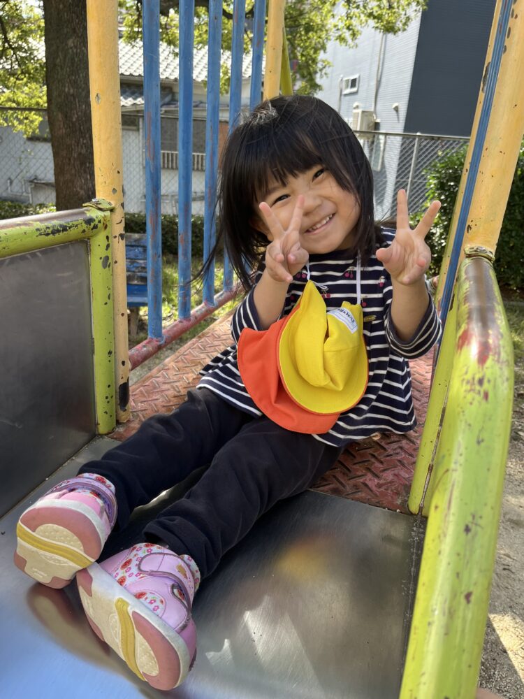 すっかり滑り台も上手になり、カメラを見つけてピース✌️💕