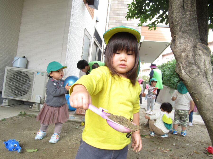スコップで土を掘ったり、ボールを投げたり…思い思いに遊ぶ子どもたち💓