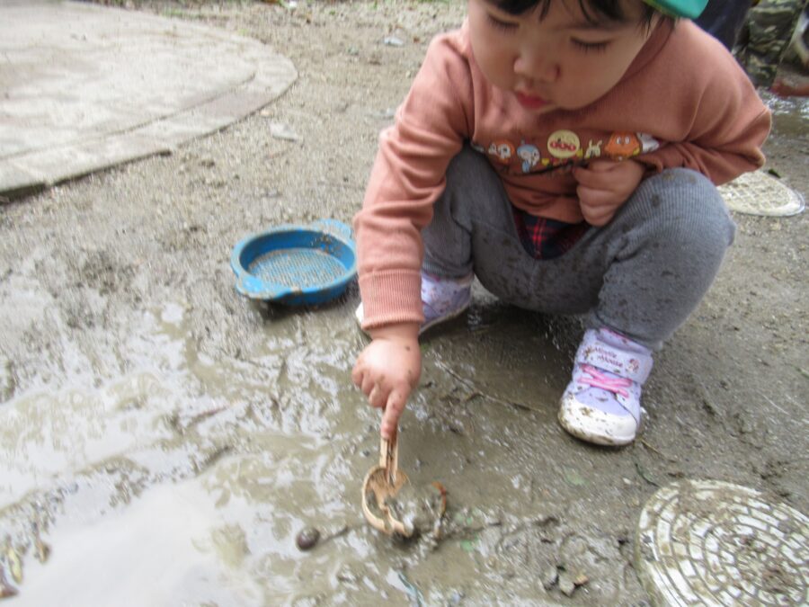 夢中になると、お手てもお洋服も少し土や泥が付いてきましたよ。