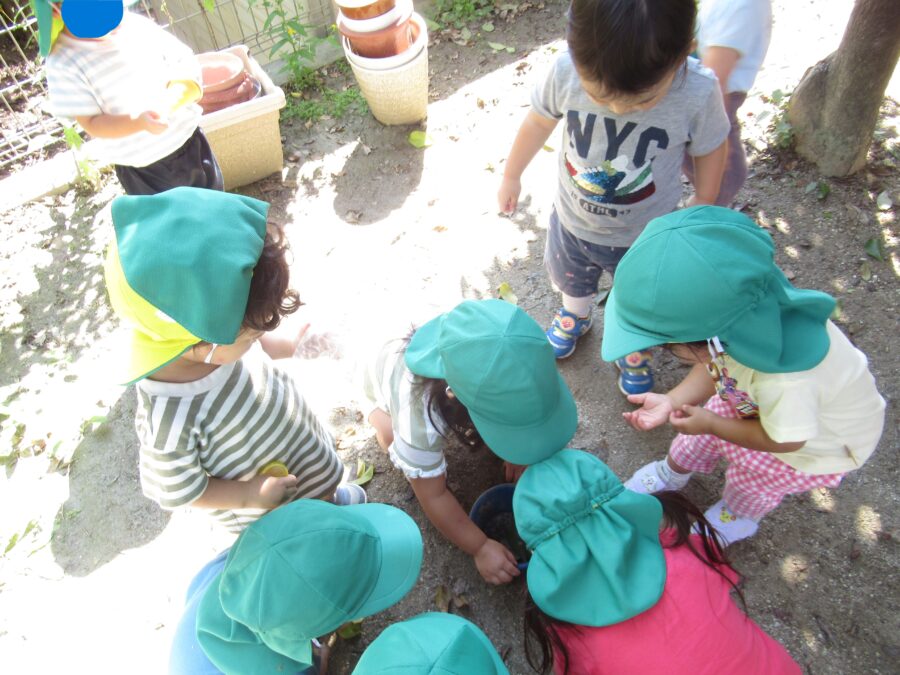 砂遊びをしたよ! みんなで砂を集めて~![]()