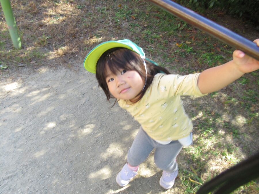 鉄棒で遊ぶ🐰組のお友だち。ぶらさがるのも大好きです。
