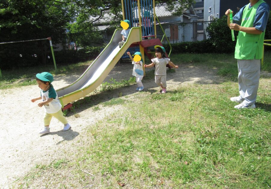 とても暑かったので、20分くらいで保育園に戻ってきた