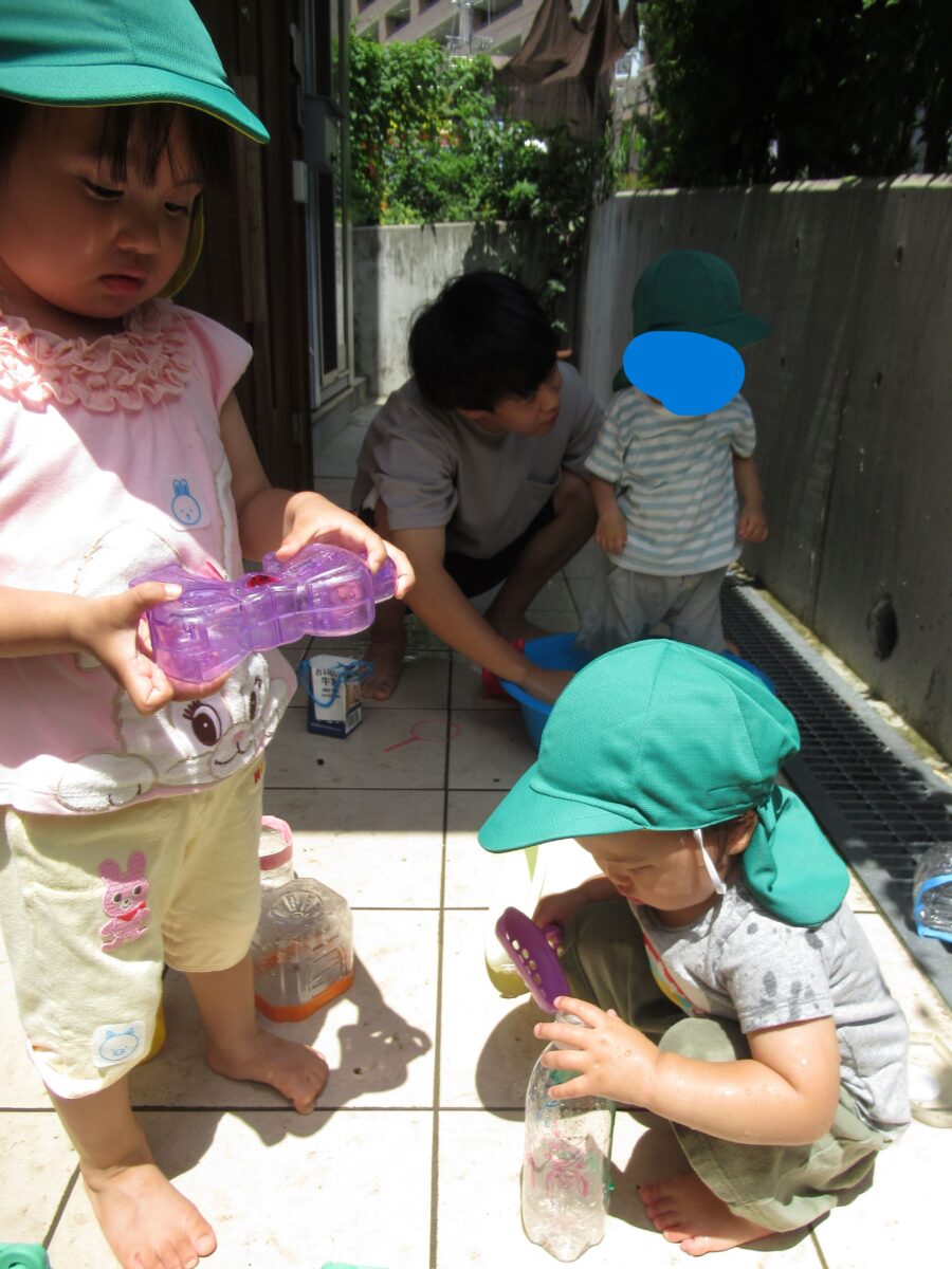 今日も園庭で水遊びを楽しみました
