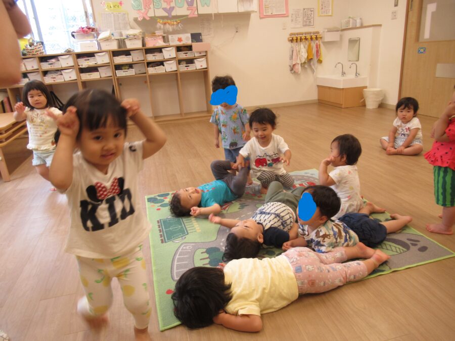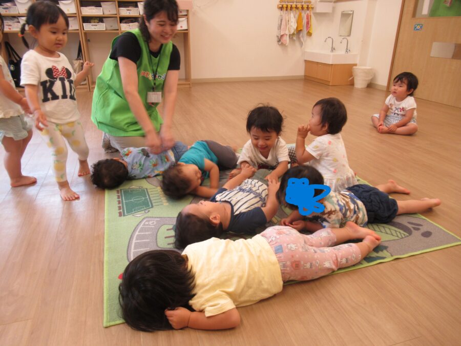 今日は室内で、むっくりくまさんをして遊びました♪