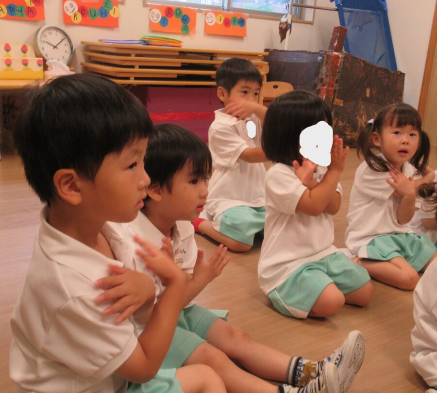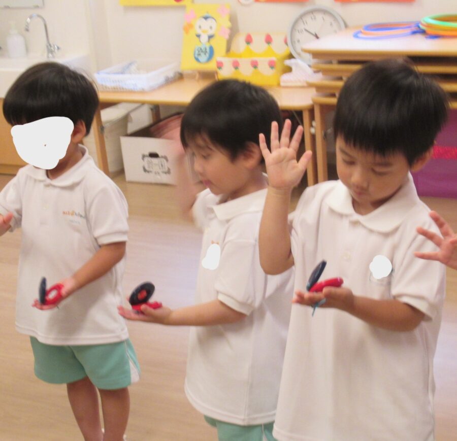 リトミックでは、雨の季節にちなんだカエルやカタツムリ🐌が登場!