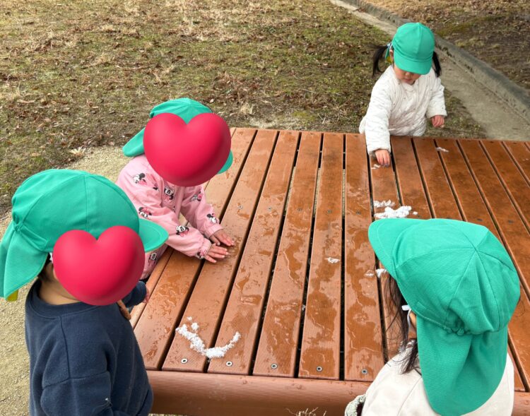 今日のりすぐみさん🐿️🎶 第三公園に行きました😆 雪が溶けていて残念でしたが、雪だるま⛄️を発見‼️ みんなで触りました😆 冷たかったね😆😆😆😆 午後の楽しそうな時間✨😊 カテゴリ: 塩釜口(2~3歳) タグ: