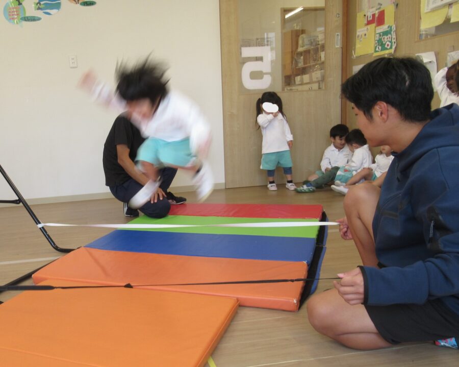 「最後はゴム跳びジャンプだよ」