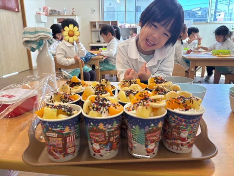 作ったケーキは給食後に美味しく食べました♪