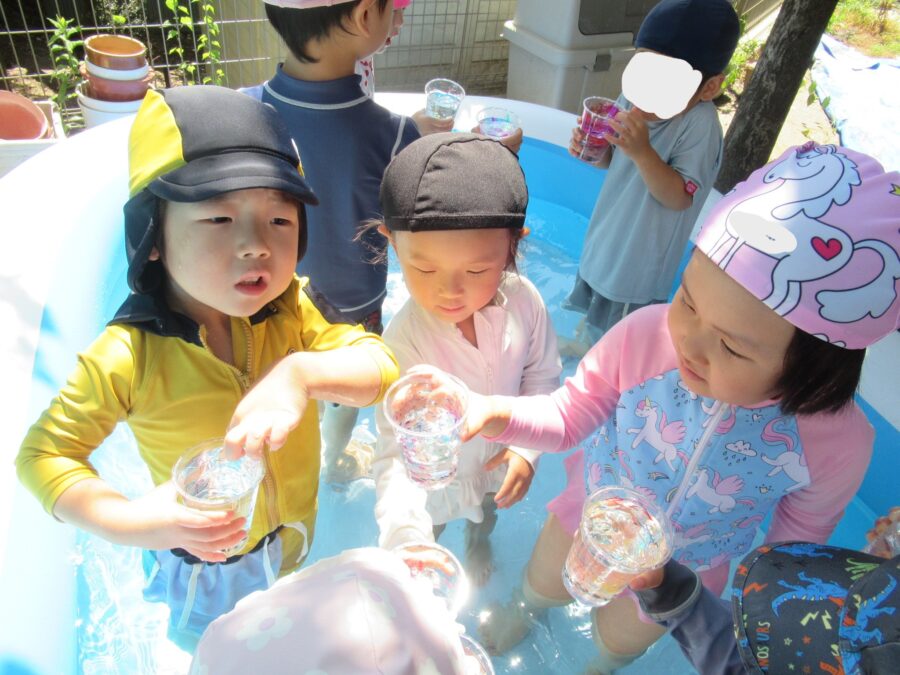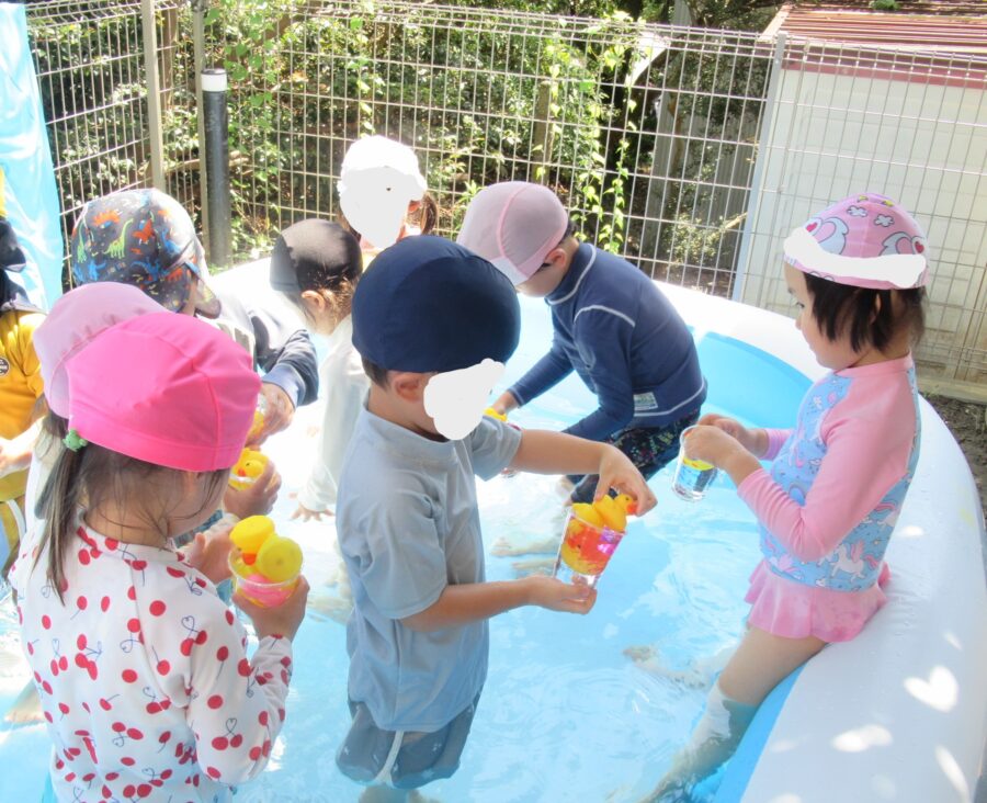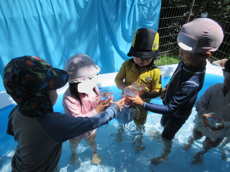 「たのしいプールに かんぱ~い😊」