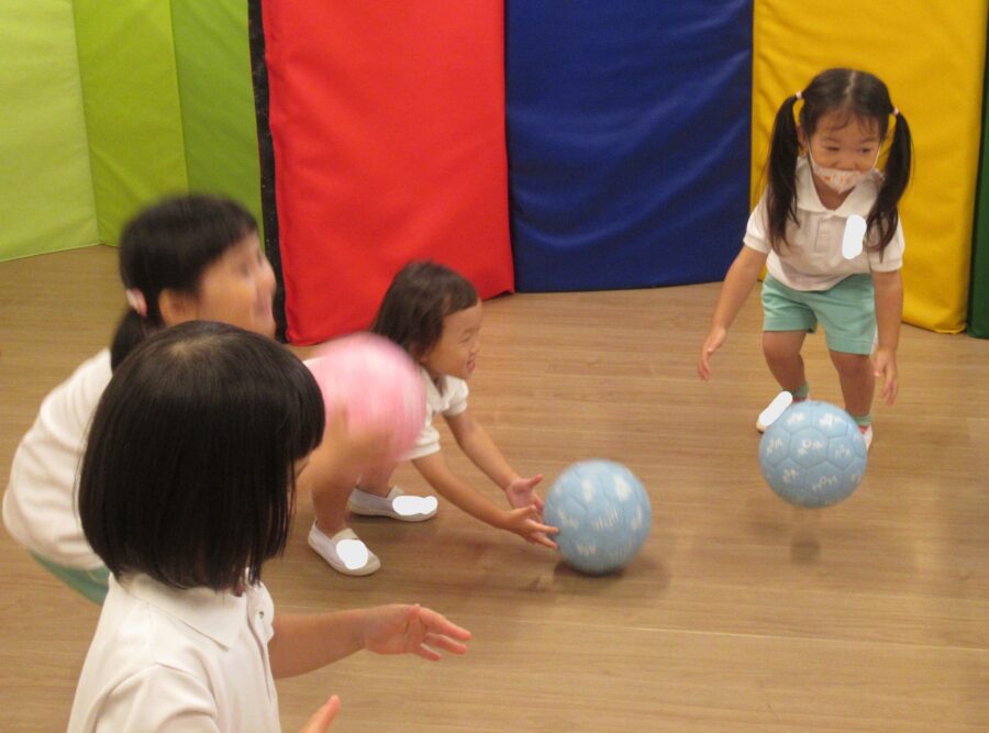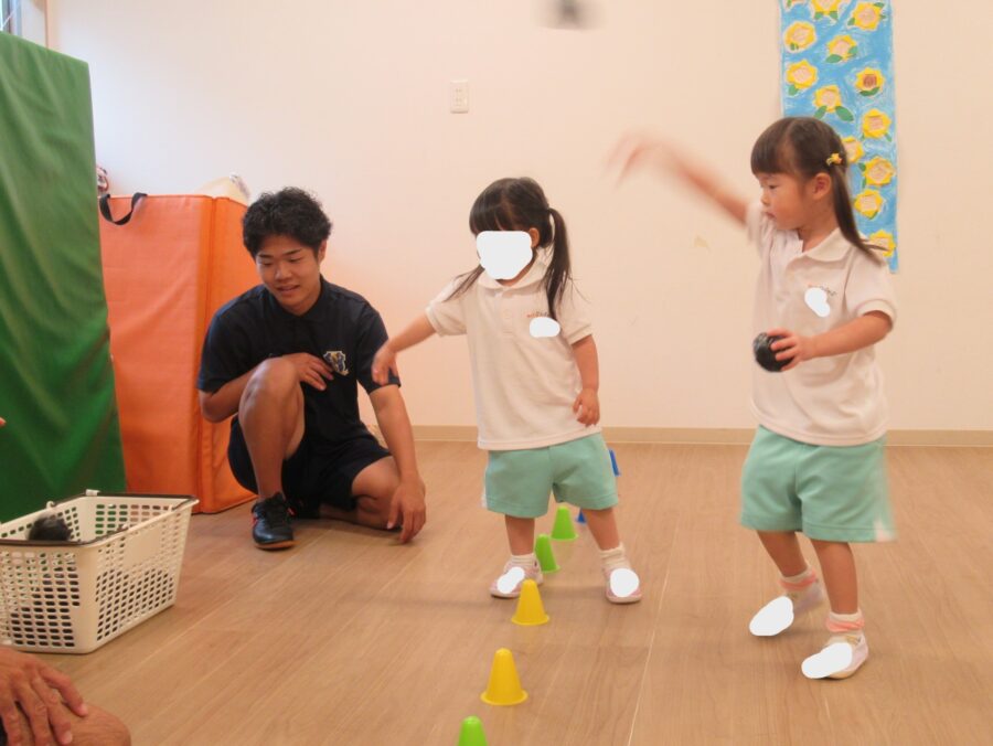 次はお友達と協力してボール🥎運び‼