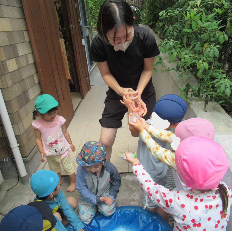昨日みんなでお豆腐パックで氷作りをしました😊