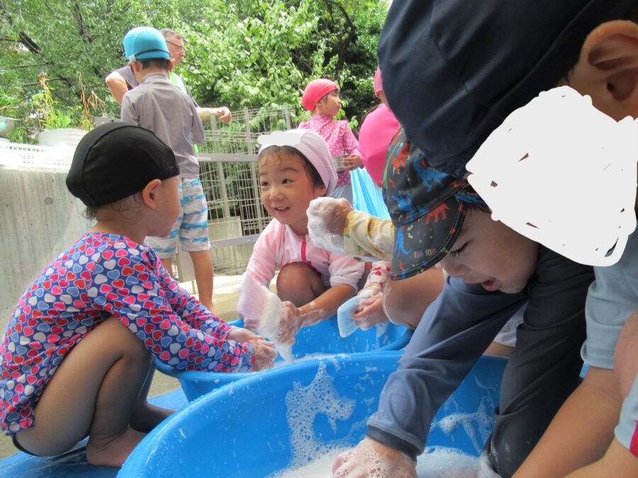 こちらはみんなで水のかけあっこ💦💦